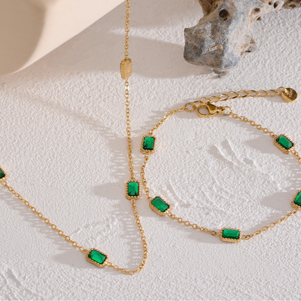 Inspirée de la mythologie grecque, notre collection de parures intemporelles dorées à l'or fin 18k est faite pour les amants de l'élégance et de l'excellence. La collection comprend des pièces uniques et des designs classiques, dans des couleurs dorées magnifiques qui sont sûres de ravir tous les styles. Chaque bijou est soigneusement conçu à partir de matériaux de qualité pour créer des pièces qui seront très appréciées pendant des années à venir. Chaque parure est conçue pour compléter les looks des femmes modernes et à la mode, avec des détails délicats et des lignes élégantes qui sont sûres de compléter n'importe quelle tenue. Ces parures sont faites pour durer et offriront à leur porteur un look à la fois intemporel et luxueux.